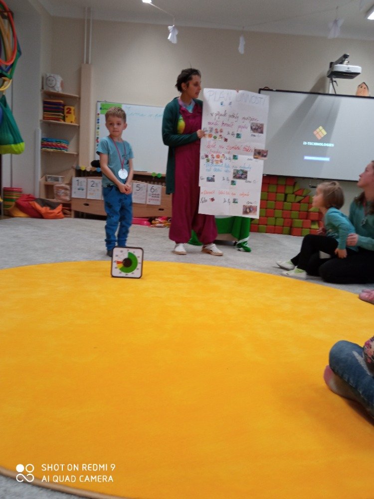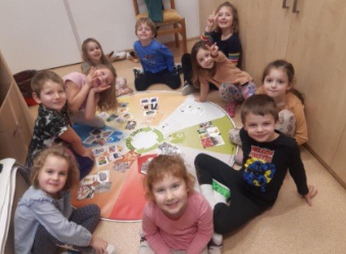 Na první schůzce malého Ekotýmu v novém roce jsme si připomněli, co jsme všechno s Ekoškolou podnikli od začátku roku. Připomněli jsme si pravidla ekoschůzek, vykreslili a zopakovali jsme si kroky Eškoškoly a věnovali jsme se tématu recyklace. Pomocí kartiček a tematického kruhu, jsme si řekli jaké máme kontejnery, jak jsou barevně rozlišeny a co do které barvy patří.